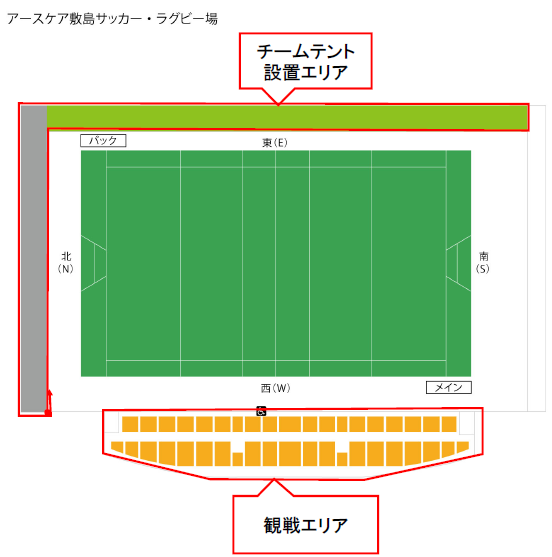 バック・芝エリアは選手・関係者専用の為、観戦不可。