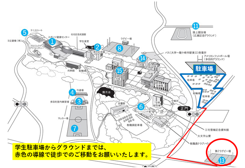 ◆当日の来場の際は公共交通機関をご利用ください。・駅から徒歩